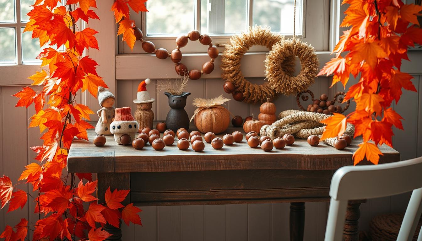 Zum Erntedankfest können Kastanien wunderbar in Tischdekorationen integriert werden. Gestalte zum Beispiel einen Herzlichen Willkommenkranz aus Kastanien oder füge sie in eine Tischmitte ein, die mit bunten Herbstblättern und Kerzen geschmückt ist. Diese natürlichen bastelideen mit Kastanien verleihen jedem Fest eine besonders warme und einladende Atmosphäre.